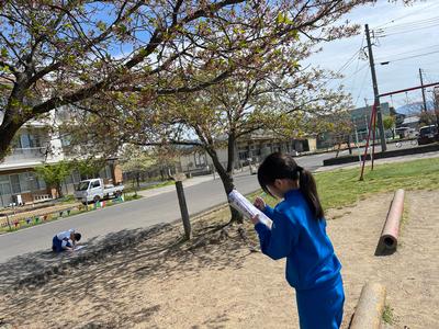 4年生が理科で『あたたかくなると』に取り組んでいました。桜の木を観察したり、モンシロチョウを追いかけたりしていました。理科は『本物に触れる』ことが大切です。