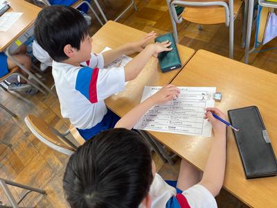 2年生が町たんけんの計画を立てていました。今日は自分が探検してみたいところの希望調査です。楽しい探検になるといいね。
