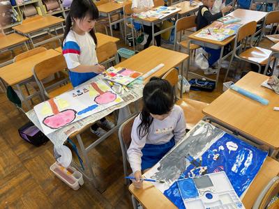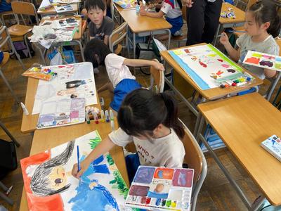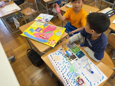 2年生が図工で『春休みの思い出』を描いていました。水族館に行ったり、BBQをしたり…。楽しい思い出がいっぱいです。そしてみんな!もうすくゴールデンウィークだ!がんばれ!