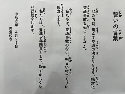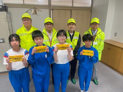 『交通少年団の結団式』がありました。6年生が交通安全に関する呼びかけを全校に行います。1年生もしっかりと復唱していました。その後『国高地区交通安全協会』のみなさんから『腕章』をいただきました。