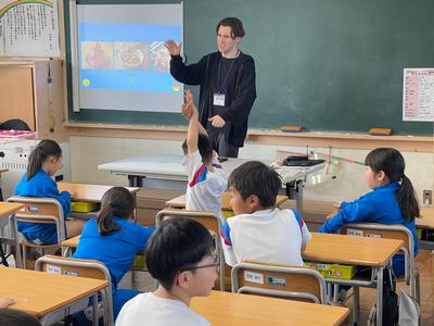 ALTの先生が新しくお見えになっています。今日は4年生で『自己紹介』を行っていました。『すっぱいもの』が大好きなようです。