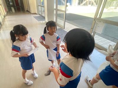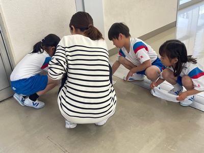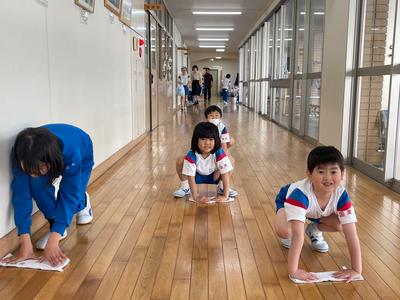 今日から1年生の掃除が始まりました。お兄さん・お姉さんや先生たちから『掃除のやり方』を習っています。一生懸命にがんばっていましたよ!