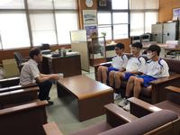 9/19 明日ハピリンホールで行われる中学生福井王決定戦に出場する1年生3人が校長室に来てくれました。