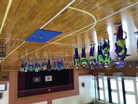 12/2 市小学校体育推進事業が万葉中学校体育館で行われ、北日野、味真野、北新庄の小学6年生が一堂に集まって、ニュースポーツを楽しみました。