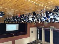 4/18 授業参観後に令和8年度PTA総会が体育館にて行われました。総会の初めに、昨年度行われた開校30周年記念事業の一つ、人文字撮影の様子がスライドで紹介されました。引き続き議事が行われ、すべての議案が承認されました。ありがとうございました。総会の中で令和7年度の三役の方に感謝状が贈呈されました。令和7年度の役員の皆様大変お世話になりました。令和8年度の役員の皆様、どうぞよろしくお願いいたします。