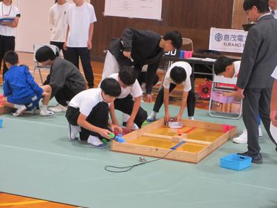 10月11日(土)、福井工業高等専門学校で「第20回越前市ロボットコンテスト」が開催されました。本校から3チーム9名の子どもたちが出場しました。夏休みから休日を利用して、ロボットを製作してきました。自分たちで工夫して作り上げたロボットを操って、白熱した試合を繰り広げました。互いに協力しながら最後まで全力で取り組む姿は、とても素晴らしかったです。山田夢さん・佐々木さん・山田裕さんのチーム「ミャクルン」が3位に入賞しました。おめでとうございます!