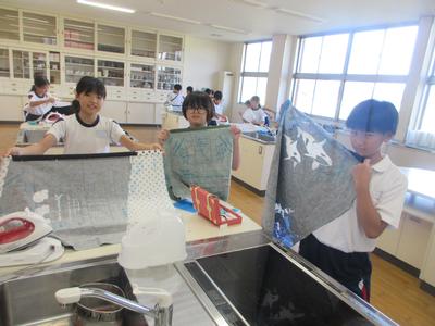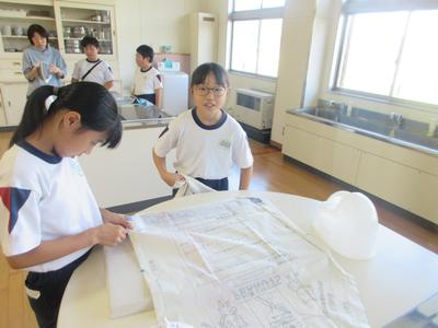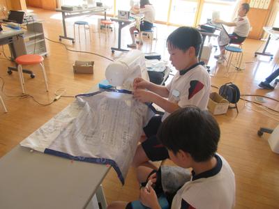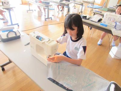 5年生は、家庭の授業でエプロンを作りました。慣れないミシンを使って、オリジナルのエプロンを制作しました。完成品を見て、大満足でした。