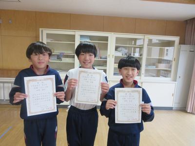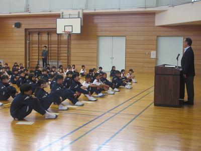 昨日行われました校内マラソン大会の表彰式を行いました。表彰式後、校長より全員が完走できたこと。生活委員が中心となって、応援をしたり、運営に関わったたりして、「わかくさっ子」の向上心を高めてくれたこと。ボランティアの方へ感謝の気持ちを持つことなどの話がありました。