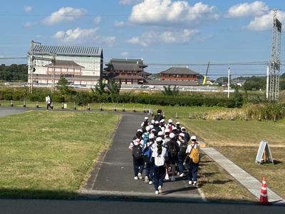 薬師寺の後は、平城宮跡歴史公園で昼食を食べ、いざない館の見学、朱雀門広場を散策しました。いざない館にある越前市とゆかりのある木簡を見つけることができたでしょうか。天気が良くて、最高の散策日和になりました。
