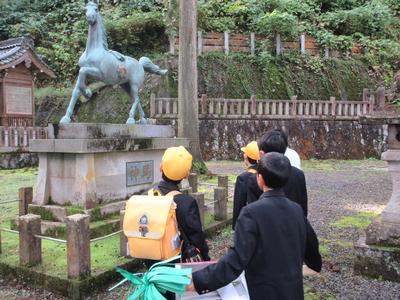 6年生は、ふるさと福井CMコンテストに向けた映像撮影をしました。地元にある白山神社へ行き、ストーリーにあった場所を見つけながら、動画を撮りました。一人ひとりが役割に責任を持ち、楽しく取り組むことができました。完成がとても楽しみです。