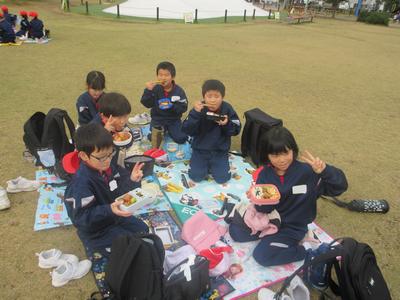 1・2年生は、秋の校外学習に行きました。路線バスを使って、武生駅まで行き、歩いて中央図書館・だるまちゃん広場へ行きました。中央図書館で、館内のルールや本の借り方などを教えていただきました。だるまちゃん広場では、みんなでお弁当を食べ、楽しく遊ぶことができました。