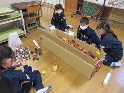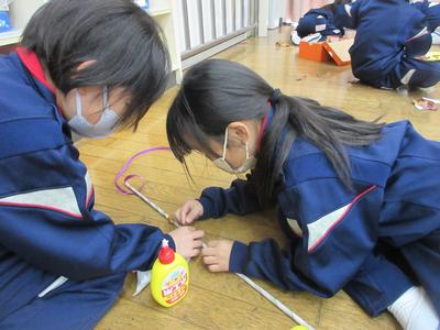 おもちゃ祭りに向けて、宝探しや魚釣りなどのゲームを作っています。お客さんに喜んでもらえるように、グループで協力しながら、楽しいおもちゃを頑張って作っています。たくさんお客さんが来てくれるのを楽しみにしています。