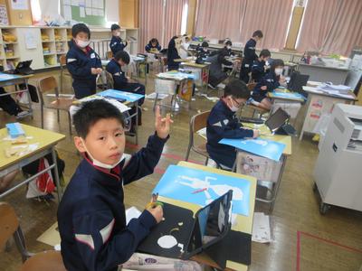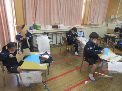 2年生は図工でスチレン版画づくりをしました。顔の表情を立体的に見えるよう高さを変えたり、手や足の動きをイメージしたりして作っていました。みんな、黙々と取り組んでいました。完成が楽しみです。