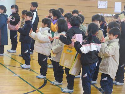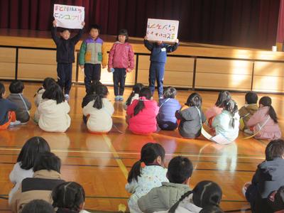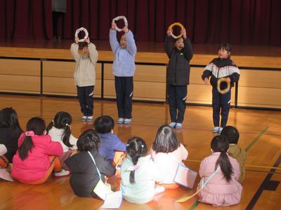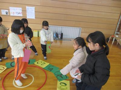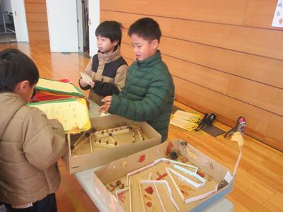 1・2年生は、南中山こども園の年長さんの園児を招いて、おもちゃまつりを行いました。自分たちで工夫して作った、ゴムロケット・紙トンボ・魚つり・秋のわなげなどのおもちゃがありました。園児たちを案内しながら、楽しく参加することができました。
