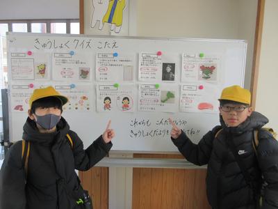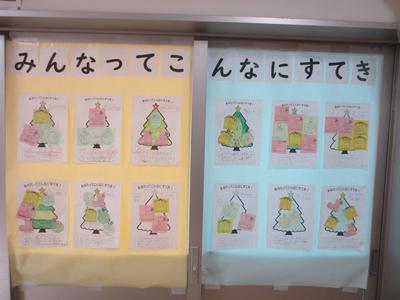 校舎内には、多くの展示物があります。委員会や学年で取組んだ様子がわかりやすく展示されています。子どもたちは、休み時間などを利用して、内容を確認したり、友達の考えや意見を読んだりして、多くのことを学んでいます。