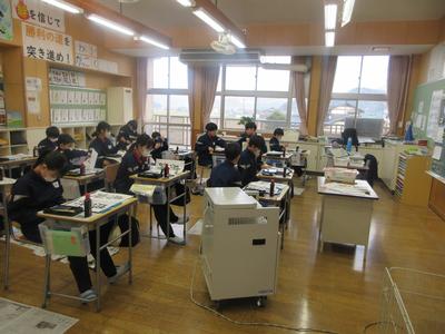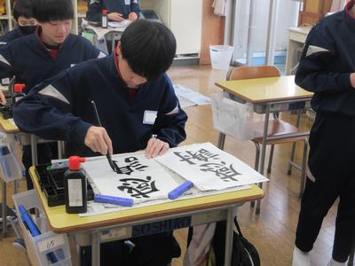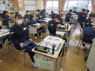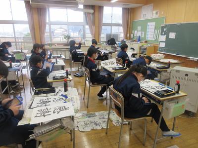6年生は書写の時間に「感謝」という言葉を書きました。書くポイントを確認して、丁寧に仕上げていました。