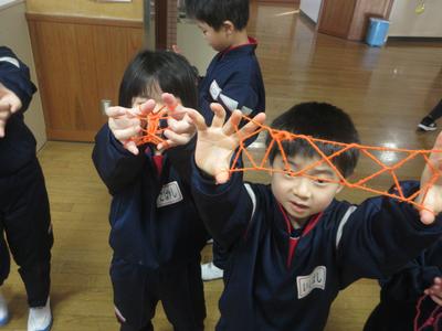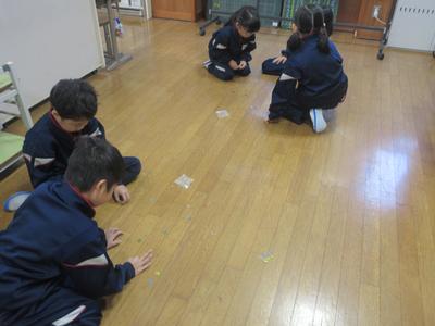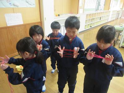 1年生は、むかし遊びを学びました。お手玉・けん玉・あやとり・おはじきを体験しました。やり方を先生に教えてもらい、グループで協力して楽しんでいました。