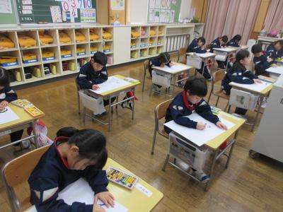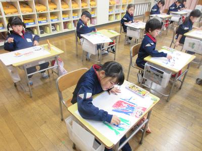 1年生は、図工の時間に1年間の思い出を描きました。楽しかった思い出を振り返りながら、真剣に描いていました。完成がとても楽しみですね。