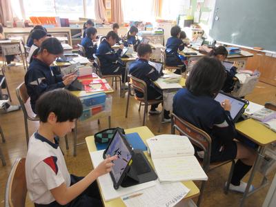3年生は、国語の授業で音訓かるたを作りました。タブレッドを活用し、上手に作成していました。かるたからイメージした絵も描いていました。