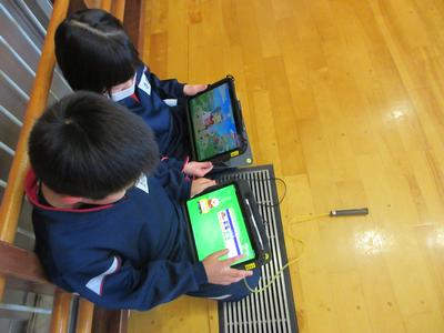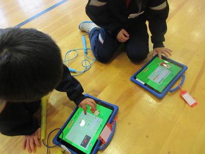 今日は、チャレンジタイムで縄跳びをしました。上級生と下級生がペアになり、跳ぶポイントをアドバイスしたり、応援したりして、お互いに記録更新を目指しています。記録は、はぴりゅスポーツ広場に記載します。
