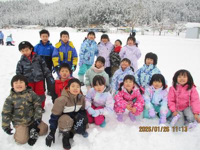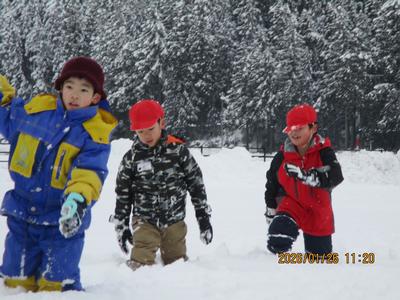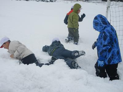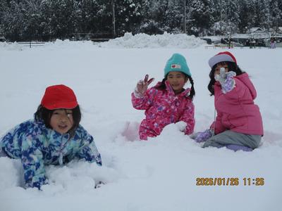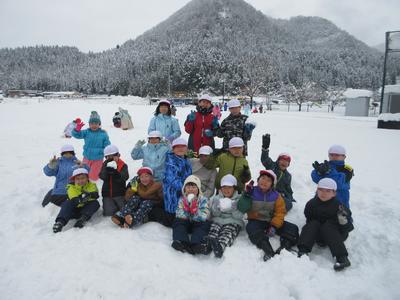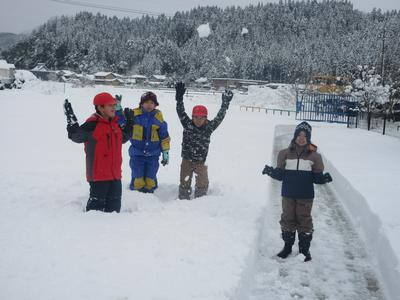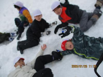 1・2年生は、雪遊びをしました。積もった校庭の雪で思いっきり楽しみました。とても元気な子どもたちでした。