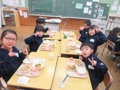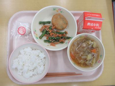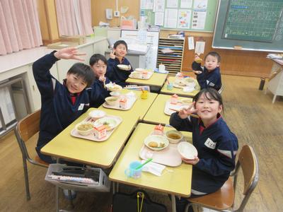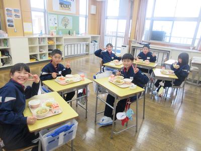 今日の給食は、「地場産プラスワン」ということで、ご飯・牛乳・ふくいSANコロッケ・ツナといんげんのごま和え・豚汁・いちごクリーム大福でした。余ったコロッケや大福は希望者でジャンケンして、とても盛り上がっていました。いつも、美味しい給食を作っていただいている調理員さん、ありがとうございます。
