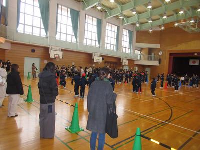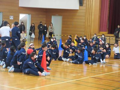 今日の学校公開日に合わせて、大縄跳び大会を行いました。縦割り班のチームで、赤と青に分かれて競い合いました。多くのおうちの方が見守る中、普段は跳ぶことに躊躇する子も今日は、積極的に挑戦していました。子どもたちはいつも以上の力を発揮し、ほとんどのチームが最高記録を更新しました。