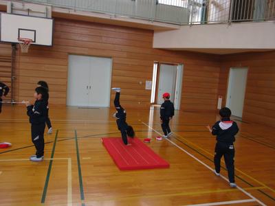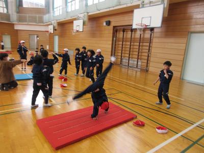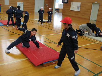 1・2年生は合同体育で「マットを使った運動遊び」をしました。いろいろな方向に転がったり、手で体を支えたりして、マット運動の楽しさを学びました。また、後ろ回りや側転など自分のできそうな技を見つけ、練習していました。
