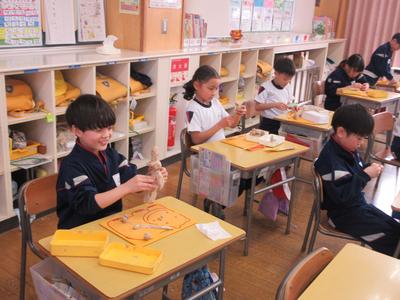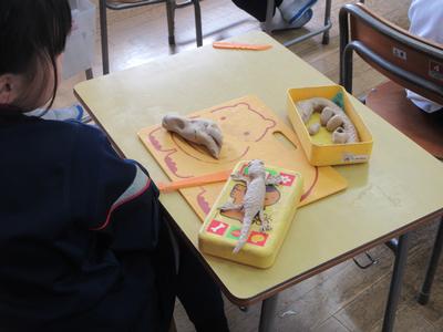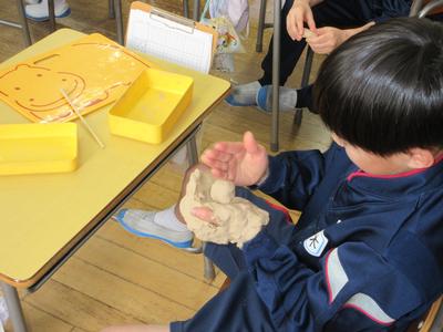 3年生は、図工の時間に粘土を使って、色々なものを作りました。野球道具やトカゲなど様々なものを一生懸命に作っていました。完成した作品を得意気に見せてくれました。