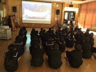 5・6年生は、絵本コンサートがありました。絵本の読み聞かせにドラムやハープの演奏が重なり合って、子どもたちは、絵本の世界観に入り込むことができ、想像力を広げていくことができました。とても、楽しく有意義な時間でした。読み聞かせボランティアの皆さん、演奏していただきました講師の先生方、今日はありがとうございました。次回も楽しみにしています。