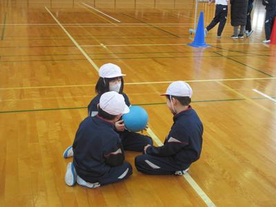 2年生は、体育の授業でボールを使ったゲームをしました。チームで作戦会議をして、相手に勝てるように工夫して臨んでいました。
