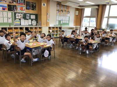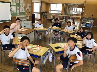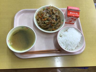 今日の給食は、チャプチェ、じゃがいもとわかめの中華スープ、ご飯、牛乳でした。子どもたちは、楽しみながら給食を食べていました。