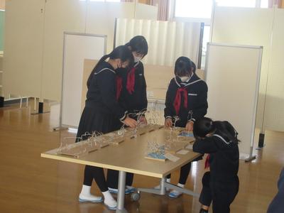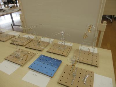 5年生は、図工の時間に「ワイヤー・ワールド」を作りました。針金を使って、曲げたり、ねじったりして形を整えていきます。子どもたちのおもしろい発想から素敵な作品ができあがりました。