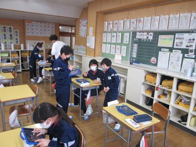 5年生は、算数の授業で、速さについて勉強しました。問題に対して、課題を見つけ論理的に自分の言葉で説明していました。また、友達の見方・考え方を参考にしながら、学習を進めていました。