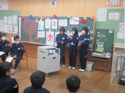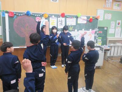 6年を送る会がありました。5年生が中心となって、インタビュー内容やゲームを企画し、上手く流れるように場の設定や時間を考えながら運営しました。1年生は、6年生を教室まで案内する役をしました。6年生は、とても楽しい時間を過ごすことができました。