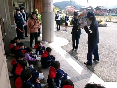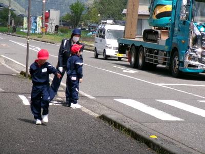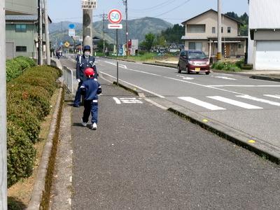 1年生は、交通安全教室を行いました。越前警察署の方や交通指導員の方にご指導いただき、歩行練習を行いました。道路の歩き方や信号の見方、横断歩道の渡り方などを教えていただき、その後、実際に学校周りの道路を歩きました。一人で道路を歩くことがなかった子どももいて、緊張した様子が見られましたが、みんなルールを守って歩くことができました。最後は、警察署員の方のお話や子どもたちが感想を言って終わりました。越前警察署員、交通指導員の皆様、本日はありがとうございました。