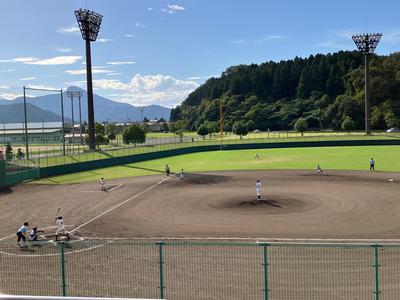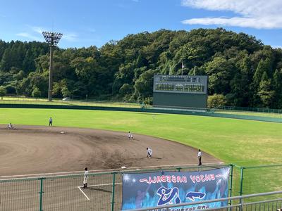 野球競技は、敦賀市総合運動公園野球場で行われています。第一試合、準決勝を順当に勝ち上がりました。2日目に行われた決勝は惜しくも敗れましたが、見事準優勝です。おめでとうございます。