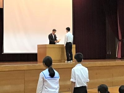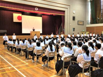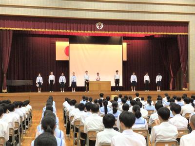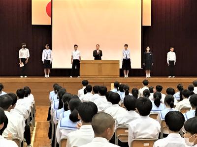 本日、任命式が行われました。後期の級長や生徒会執行部、各委員会の委員長として、新しいメンバーが任命されました。これからも、仲間と協力しながら、よりよい学級・学校づくりのためにがんばっていってください。