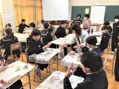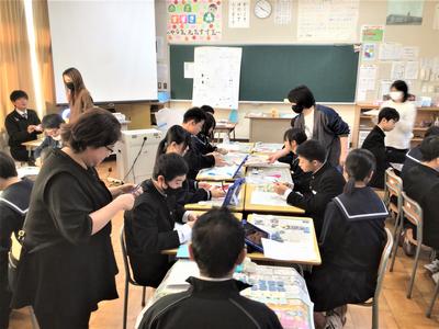 3年生が、卒業式で胸につけるコサージュを作りました。保護者の方がボランティアとして参加し、子どもたちにコサージュ作りを丁寧にレクチャーしてくださいました。越前和紙で作ったコサージュは温かみがあり、どれも世界に一つだけの素敵な作品となりました。卒業式の日には、今日のこの時間を思い出しながら胸につけることでしょう。お手伝いいただいた保護者ボランティアの皆さま、ありがとうございました。