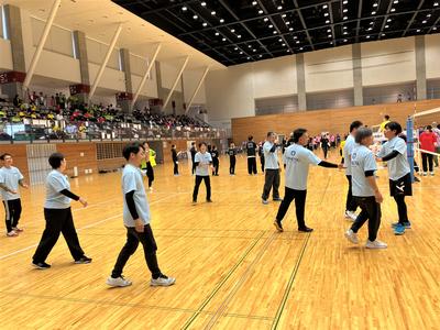 8日(土)、アイシンスポーツアリーナにおいて、市P連スポーツ交流大会が行われました。本校からは、ソフトバレーボールとキャッチング・ザ・スティックの2種目に出場しました。ソフトバレーボールでは、これまでの練習の成果を発揮し、息の合ったプレーで得点を重ね、キャッチング・ザ・スティックでは、参加者全員が真剣な表情で競技に取り組みました。応援でも、一体感のある振り付けと声援で会場を盛り上げました。その結果、見事「チーム賞」を受賞しました。ご参加くださった保護者の皆様、準備をしてくださった部員の皆様、ありがとうございました。