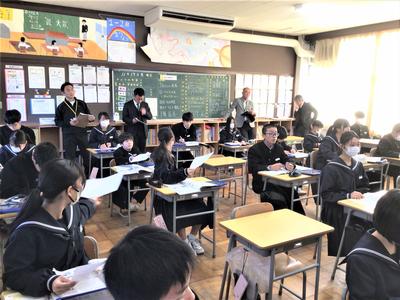 17日(月)に市指導主事学校訪問がありました。市教育委員会の指導主事の先生方や市内小中学校の先生方が来校され、本校の授業を参観されました。