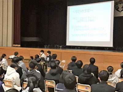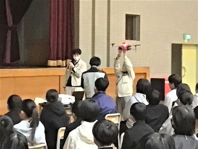 11月26日(水)、福井県丹南土木事務所の職員の方を講師に迎え、防災教室を実施しました。土砂災害や洪水の際に身を守る方法をわかりやすく教えていただくとともに、ドローンを使った災害時の活動の様子も見学しました。授業を通して、災害の恐ろしさを改めて理解するとともに、いざというときの行動について考えるよい機会となりました。