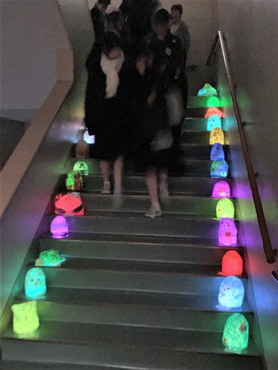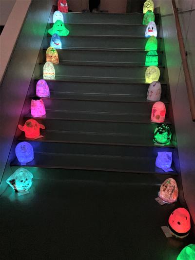 3年生は、美術科の学習でランプシェードづくりに取り組みました。自分の思いを形にしようと、色や模様、形を工夫しながら、一人ひとりが試行錯誤して心を込めて作品を仕上げました。完成したランプシェードは、どれも個性が光る力作ばかりです。放課後には、子どもたちの作品が南校舎の階段にずらりと並びました。灯りがともると、階段一面が優しい光に包まれ、まるで別世界のような幻想的な空間に早変わりしました。心を込めて作った作品が、こうして多くの人の目に触れ、あたたかい気持ちを届けてくれるのはとても素敵なことです。3年生にとって、ものづくりの楽しさや自分の表現が広がっていく喜びを感じられる、思い出深い学習となりました。