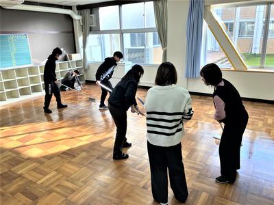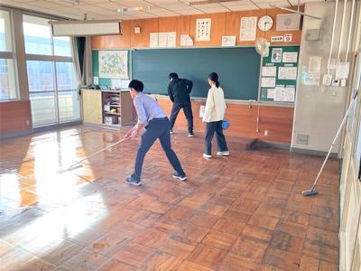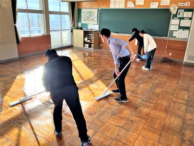 生徒が下校した後、教職員で協力して教室のワックスがけを行いました。一つ一つの教室を丁寧に仕上げたことで、校舎内は見違えるほど明るく、きれいになりました。これで、子どもたちを迎える新しい年への準備が整いました。