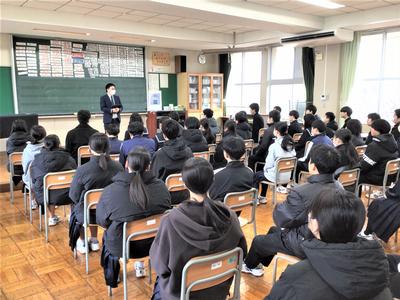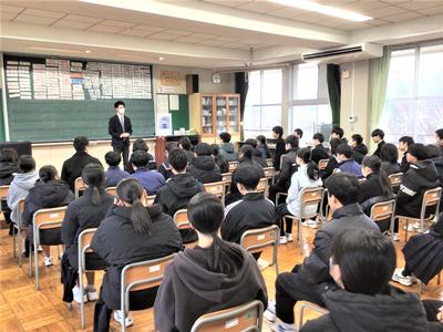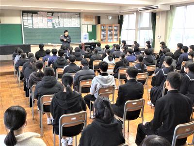 3年生の学年集会が行われました。学年主任の先生や担任の先生から、生徒一人一人に向けて熱い思いが語られました。3年生にとって3学期は、これまで積み重ねてきた努力を形にしていく大切な時期です。仲間と支え合いながら、最後まであきらめずに取り組んでいきましょう。3年生の先生方も、皆さんと共に全力で歩んでいきます。