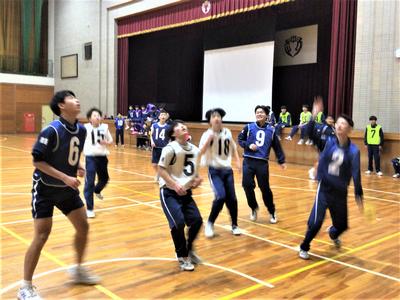 3年生の球技大会(バスケットボール)が行われました。クラスで団結して取り組む最後の行事とあって、体育館は笑顔と歓声があふれ、あたたかな空気に包まれていました。コートでプレーする仲間に向けて、大きな声援が送られていました。仲間と楽しんだ時間は、また一つ、中学校生活の心に残る思い出となったようです。