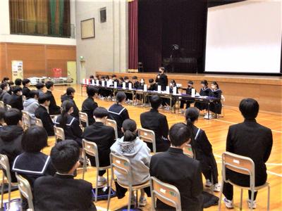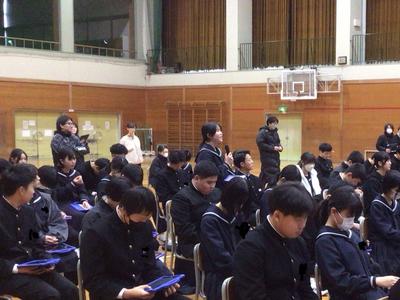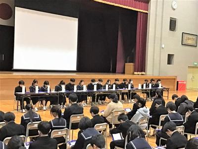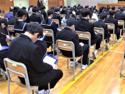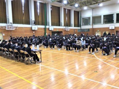 後期の生徒総会が行われました。生徒会本部や各委員会の委員長から、後期の活動についての報告がありました。どの委員会も、それぞれの役割を大切にしながらしっかりと活動してきたことが伝わり、充実した委員会活動であったことがうかがえました。また、2年生が中心となって委員会活動を支え、学校をよりよくしようと取り組んできました。来年度も、生徒会活動がさらに盛り上がり、よりよい学校づくりにつながっていくことを期待しています。
