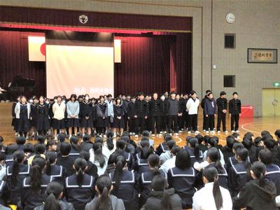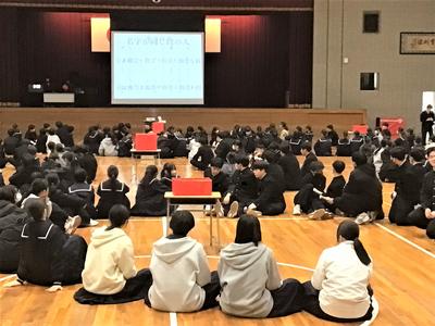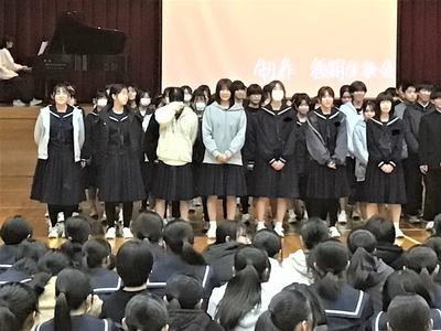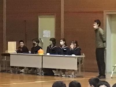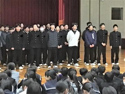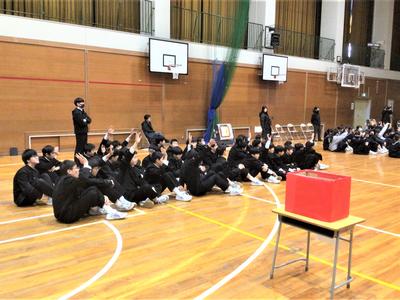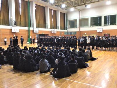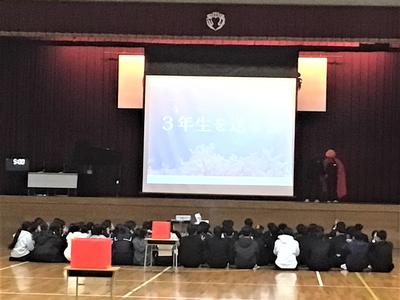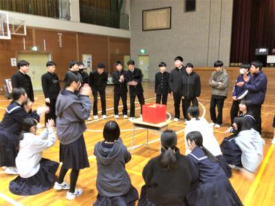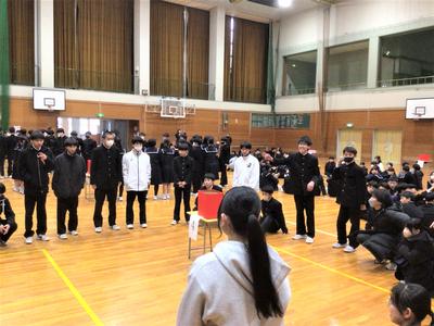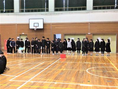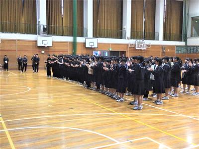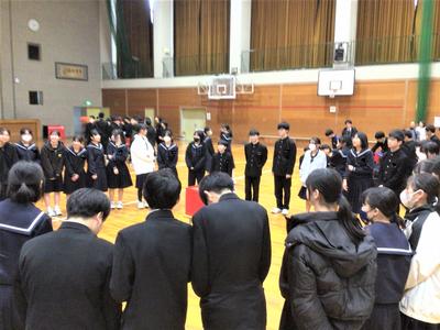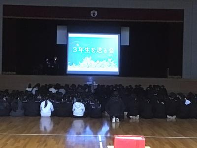 3年生を送る会がありました。今日の日のために生徒会役員が時間をかけて準備をしてきました。3年生への感謝の気持ちを表すとともに、全校で楽しむ最後のひとときをみんなで過ごしました。来週はいよいよ卒業式です。3年生にとって残りわずかとなった中学校生活ですが、後輩や先生方との思い出を胸に刻みながら、一日一日を大切に過ごしてほしいと思います。当日は、これまで学校を支えてきた3年生の門出を、全校で温かくお祝いしたいと思います。