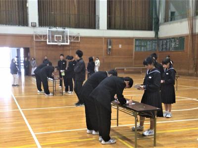 令和8年度前期生徒会役員選挙の立会演説会および選挙が行われました。候補者一人一人が、自分の掲げる公約や思いをしっかりと述べ、全校生徒に訴える姿が見られました。学校のため、そして全校生徒のために勇気をもって立候補してくれた候補者全員を称えたいと思います。立会演説会の後には選挙が行われ、生徒たちはそれぞれの思いを胸に、真剣な表情で一票を投じていました。