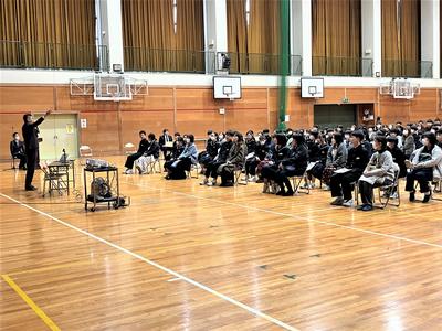 2年生を対象とした高校説明会・進路説明会を行いました。高校の校長先生からは、各高校の特色や学科の学習内容について分かりやすく説明していただきました。その後、進路担当の先生から、1年間の進路の流れについて説明がありました。